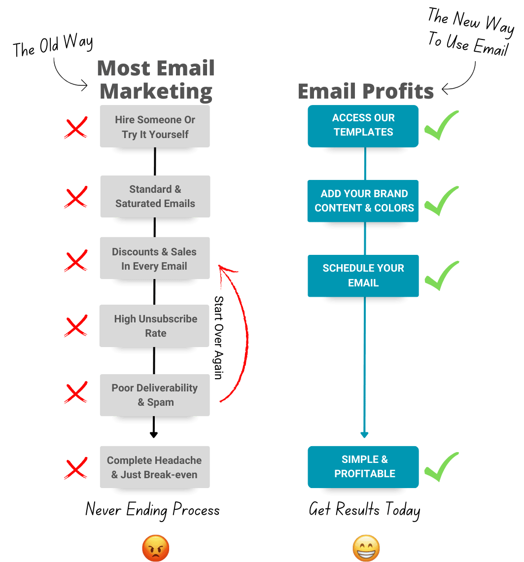 Before Email Profits you had to spend countless hours doing all the heavy lifting or outsource the work to someone else who would take all your profits... but we show you how you can simplify everything and still increase your revenue and profits for your business.